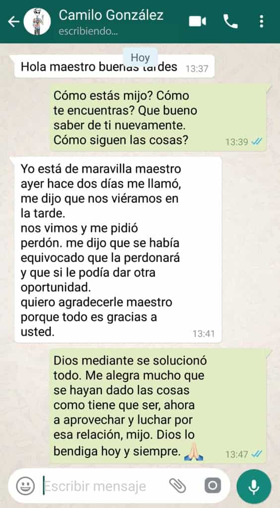 Al principio, dudaba de estas cosas, pero necesitaba ayuda. Mi novia había decidido alejarse porque decía que no éramos compatibles. Después del ritual, no solo volvió, sino que ahora nuestra relación es más fuerte que nunca. Agradezco cada día haberme decidido a dar este paso.